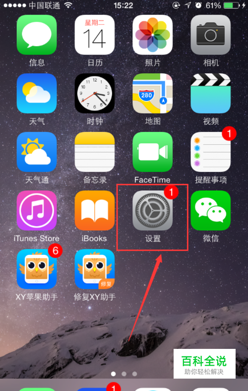 在iPhone6的主界面上打开设置功能