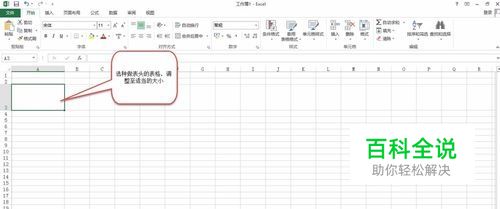 第一步,打开Excel软件,新建一个Excel表。在Excel表中选中一个要做表头的表格,并调整至适当的大小。