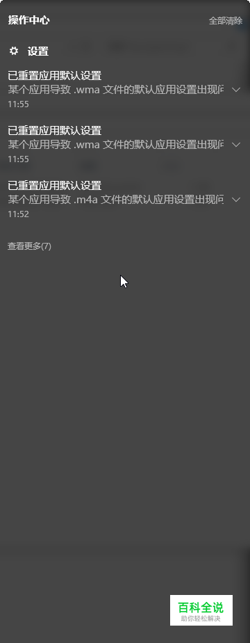 每次开机,或使用一段时间后,Win10系统的操作中心突然一直重复提示“已重置应用默认设置”