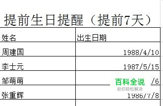 下面是某公司员工生日情况,需要在员工生日前7天做一个提醒