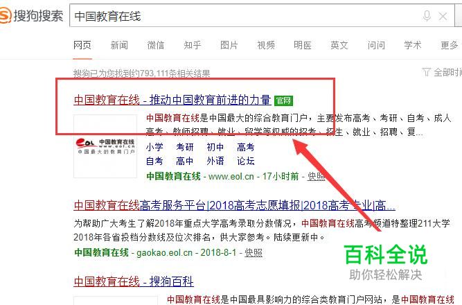 进入之后,搜索“中国教育在线”,点击搜索结果并进入,如图所示。