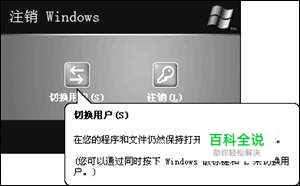 使用“注销”菜单法 切换用户最常用的方法,就是通过“注销”菜单来访问用户切换功能。方法是:单击“开始→注销”,在打开的如图1所示的“注销Windows”对话框中,单击“切换用户”按钮,系统会保留当前会话状态。从表面上看,这和注销用户并没有什么两样,但使用切换用户方法可以保留原来用户账号打开的会话(比如你正在进行软件下载,那么使用用户切换后,该下载任务会继续进行。如果使用了“注销”,那么软件下载任务就会被强行关闭)。