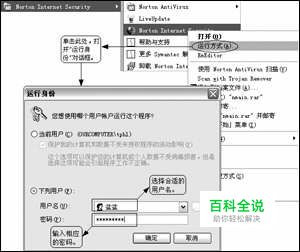 进行快速用户切换 很显然,上述方法比较繁琐:用户需要先切换到管理员环境,然后再注销回来。其实很多时候没必要劳它的大驾,我们可以使用快速用户切换功能,直接在当前用户环境下以管理员身份运行应用程序! 假设我们现在处于普通用户的环境下,想配置诺顿个人安全特警的信任域。但由于当前用户的“面子(即权限)”不够大,防火墙配置程序拒绝执行。我们来祭出快速用户切换这把“宝刀”:打开“开始→所有程序→Norton Internet Security”,用鼠标右键单击“Norton Internet Security”菜单项,选择“运行方式”菜单项,程序会打开“运行身份”对话框,单击其中的“下列用户”单选框,然后在“用户名”下拉列表框里选择一个管理员账号,并在“密码”文本框中输入相应的账号密码。最后单击“确定”按钮即可,如图2所示。接下来,系统就会以管理员的身份运行诺顿个人安全特警的配置程序!