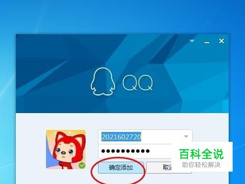 输入账号密码后,单击【 确定添加】按钮