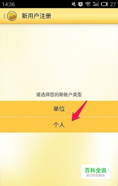 然后选择“新用户注册”。在单位和个人之间选择“个人”。