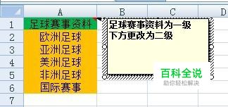 首先制作一个需要下拉菜单的excel表格,内容为足球赛事资料(一级),分区资料(二级),然后开始下一步制作。