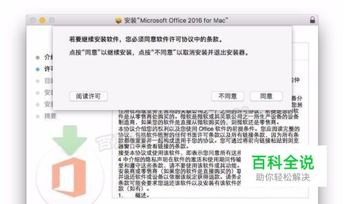 点击office2016 for mac安装向导对话框中的“继续”按钮: