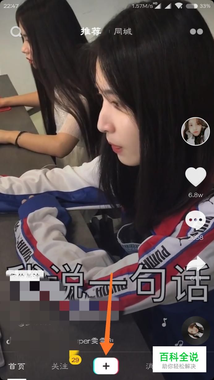 首先安装抖音并登录账号,在推荐页点击中间的加号。