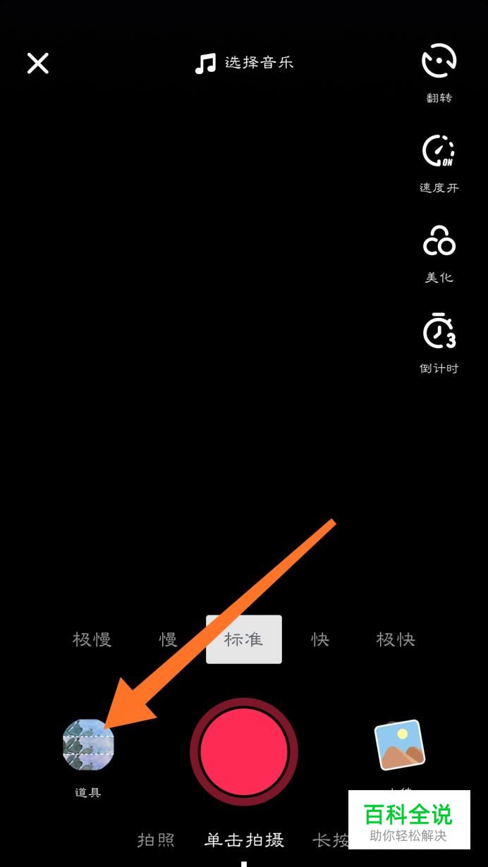 然后接下来就是拍摄页面了,点击左下角的“道具”。