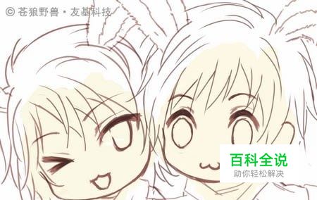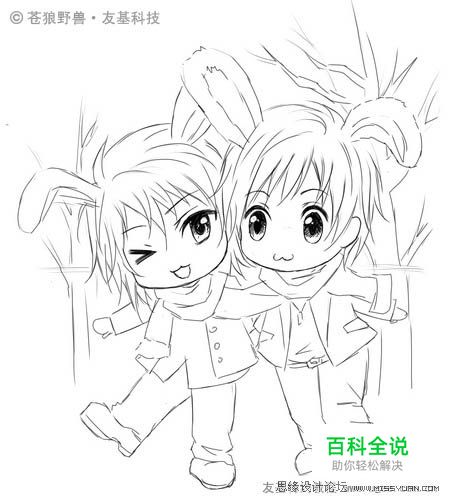 在头发图层的上面新建图层来画出两人的兔耳,2011年正好是兔年,配合新年的气氛。