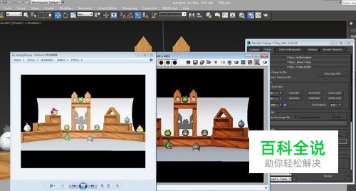 看看,右边的图片为渲染出来的图,左边的图片为保存好的图,明显色调不一致。右边的图片要更暗一些。其实这只是一种观察效果罢了,真实的图片色调还是左边保存好的。那如何更改观察设置呢?
