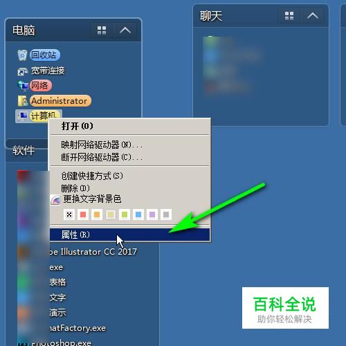 在电脑桌面上,右击计算机图标,弹出的菜单中再点:属性