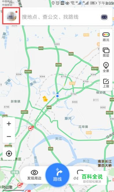 进入百度地图后,我们进行登录,然后我们点击左上角的头像;
