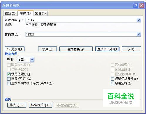 4.单击“更多”按钮,然后选中“使用通配符”复选框。