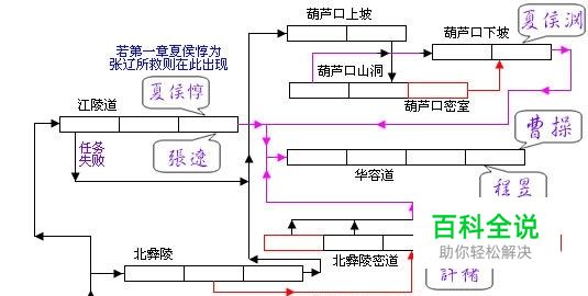 Boss:徐晃 张辽 夏侯渊 程昱 许褚 曹操 1. (鸟林)开头的蛮兵清完就是打徐晃了,这里有限制在一定的时间之内将徐晃解决,时间一到,徐晃就会跑到鸟林的后端,且也无法收伏徐晃了,所以要把握时间收伏徐晃(收伏徐晃失败后选2转2,选1转4)。 2. (江陵道)刚开始黄盖会说他被毒箭射到,要求你救他,如果救到他,就可以上马车,如果没救到会出现指标指示你任务失败只能走北彝陵(任务失败转5)。 3. (江陵道马车)这里由于只能在狭小的马车上行走,而且弓箭也很多,所以站在马车的左下角,一边打左方的弓骑兵、一边打右方的小兵,会比较容易,也比较不会被弓箭射到,小兵清完之后就打张辽了(过后转9)。 4.(北彝陵)一开始的虾兵蟹将清光之后,就会到葫芦口最窄的地方,这里不但有弓蛮兵又有投石车加上拒马,不过别担心其实这只是假像,只要贴着山壁走根本不会被击中(上面一台投石车里有补血物品),自然拒马和弓兵就没什么好怕的了,前方有被巨石压着的山洞,如果有招降徐晃 ,徐晃会自动出来帮助玩家将巨石劈开,若没收伏,山贼兵清完便会自动转到葫芦口(招降徐晃成功转8)。 5. (葫芦口上坡)这里的地形较特殊,所以需要习惯一下,一开始会有几批蛮兵,如果不想要浪费力气打兵的话,可以将下方的刺拒马打破,躲在上方的刺拒马后方,让小兵被刺拒马刺死,但是玩家要稍微注意当小兵被清光之后马上会有2个巨大的滚石会滚过来,所以要贴在山 壁边,以免被滚石压到,到了洞穴口,会有工兵将阻挡巨石的木桩打碎阻止玩家的前进,所以玩家用背向木桩的方式打工兵,可避免木桩被破坏,以阻止滚石阵。 6. (葫芦口洞穴)进入了洞穴,清光了山贼兵,就要小心地上的蛇,避免被咬到,到了出口,会出现4只熊。 7. (葫芦口下坡)这里会出现2批滚石阵,所以一出洞口(1:马上打破拒马,不封洞口,洞里就不会有兵出来。 2:往前走一步,等滚石撞上拒马把洞口封住,但封住之前会有小兵出来。),之后马上再回到洞口前,等待着第一批滚石的完结 ,之后会出现一些山贼兵,快速清光,第二批滚石又来了,再马上回到洞口,等待滚石的结束,往前走便是夏侯渊的闪亮登场(记住!夏侯渊的出场别站在画面中间,会被滚石打到,还会被他劈到)。 8. (北彝陵密室)进入了山洞就会有炸弹兵将洞口封住,洞穴里的敌人就是许褚,打倒许褚后会有左边和右边可以选择,走左边较危险,走右边较安全。 9. (华容道)清完5批小卒就是程昱,最后就是和曹操的主战场了。 道具及其拿法: →巫扇(攻击提高42%+爆):招降程昱。 →凤翔烈阳刀(攻击提高28%+火,关羽在场):北彝陵密室-左,打开密室宝箱。 →天火双煞弓:北彝陵密室-右,打开密室宝箱。 →张鲁战袍(防御提高17%+防毒):北彝陵密室-右,打开密室宝箱。 →鹤羽宝衣(防御提高15%):北彝陵密室-左, 打开密室铁宝箱。 →流马:北彝陵密室-左,打开密室宝箱。 →金丝战衣(防御提高7%+出招硬汉效果):葫芦口密室,击倒山贼兵落下。 →蚩尤战甲(防御提高12%):江陵道,救黄盖任务成功,下马车后黄盖丢下。 →飞天虎爪(攻击力提高32%+增加1格功击范围,貂蝉在场):招降夏侯渊即可。 →盘龙三结棍(攻击力降低18%,一般连续打击多4~5下):葫芦口密室内。 →倚天剑(攻击力提高25%):撞击曹操5下(马超在场)。 密室及其进法: 葫芦口密室:清光山贼兵和蛇之后蹲下往右边走(画面中间偏上一点有一个小木洞)。 北彝陵密室:收伏徐晃即可。 北彝陵密室-右 北彝陵密室:先用火焰弹点燃火车再撞击火车去撞后面的刀车。 北彝陵密室-左 北彝陵密室:5秒之内将3个火焰弹丢在地上炸弹前,并投掷1个炸弹引燃火焰弹。 敌将招降: 徐晃 :第一次交战时击倒即可。 夏侯渊:用夏侯敦击倒后靠近AB(同时按)即可。 程昱:击倒他后,主角分数4500万分以上去帮程昱挡住曹操的攻击即可。 许褚:用徐晃击倒后靠近蹲下即可。 曹操:1:放白虎再放任何一种神器再用民兵策杀死。2:放任何2种神器再放程昱236b再用民兵策杀死。(推荐使用第一种方法比较简单)。