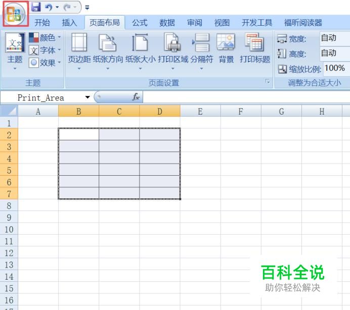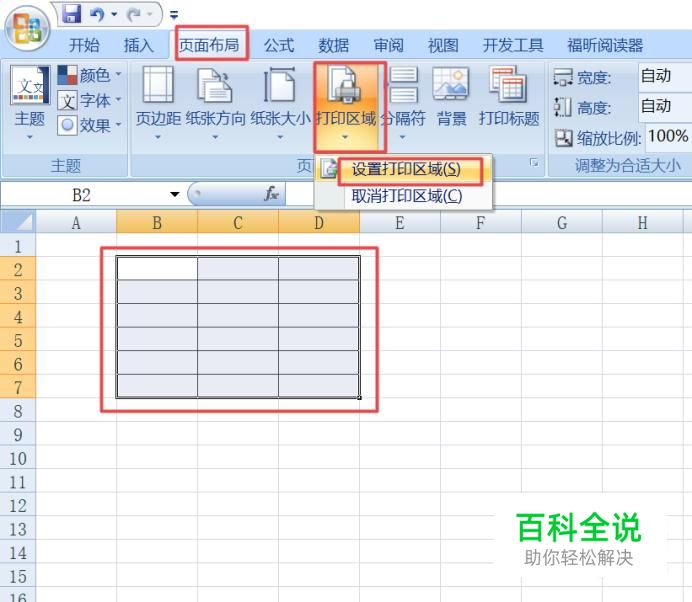 首先,我们打开一个excel文档,我们选中里面的表格,然后我们点击页面布局,之后我们点击打印区域,然后我们点击设置打印区域;