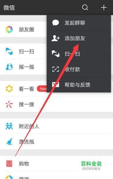 进入之后,点击图示位置的“+”,选择“添加朋友”,如图所示。