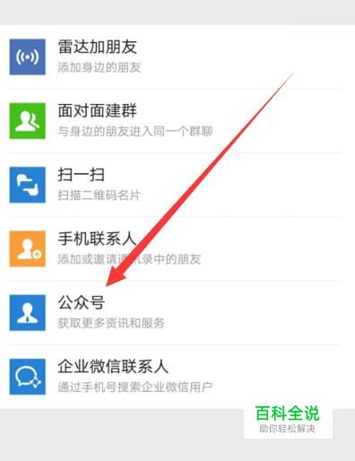 进入之后,选择“公众号”,进入下一页面,如图所示。