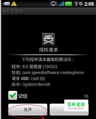 进入RE浏览工具,查看最后一个菜单项目“system”,选中,注意,第一次进入会提示需要ROOT权限,点击允许即可,如下图。