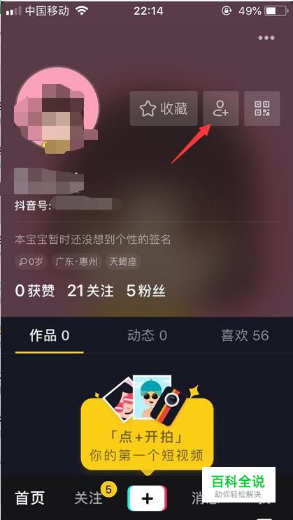 首先我们打开抖音登录账号后,在个人页面里点击带+号的人形图标。