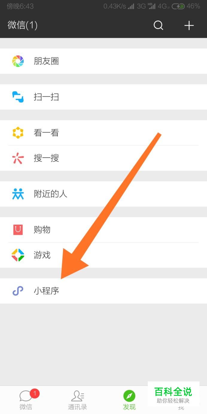 首先点击进入微信“发现”的“小程序”页面。