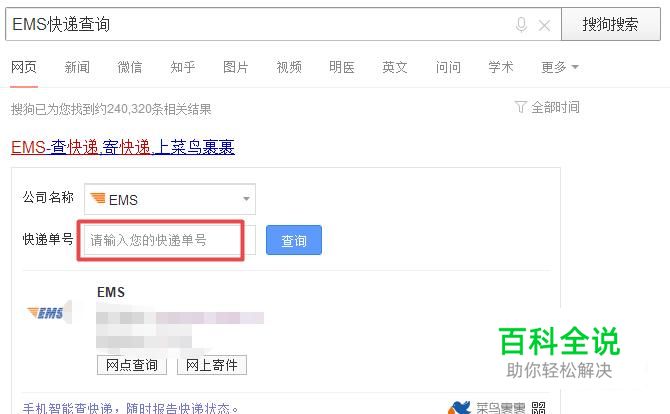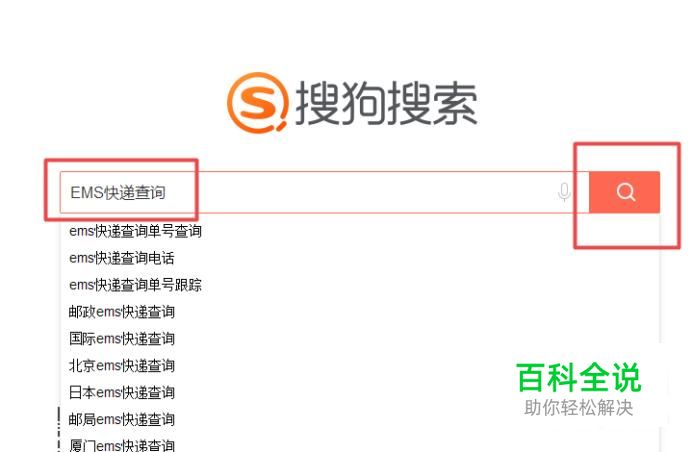 首先,我们打开我们电脑上面的浏览器,然后我们在搜索引擎中输入EMS快递查询,之后我们点击搜索按钮;