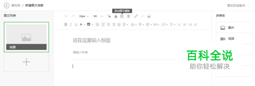 二是点开“新建图文素材”,鼠标停在编辑框的正文处,然后点击编辑器第一行倒数第五个“添加图文模版”,可以直接编辑你需要的模板。