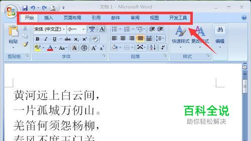在文档的上方会看到一个菜单项,如图所示。