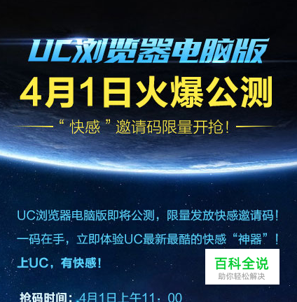 众所周知,在智能手机领域,UC浏览器以其低占有内存、极速上网而成为众多手机浏览器中的佼佼者。今天UC也推出了自己的电脑版浏览器。目前UC浏览器处于公测阶段,在此大家可以获取邀请码参与该款浏览器的试用阶段。下面让我们一起来了解一下邀请码的获取方法。