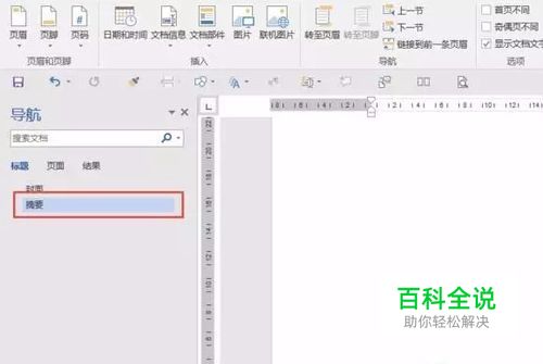然后在下一页输入“摘要”二字,我们命名其为“摘要页”。输入好后我们可以给“封面”和“摘要”应用一个样式,比如“标题1”样式,方便后面阐述。我们此时看看Word状态栏左下角页码那,发现它显示的是“共3页”。对,此时我们的文档一共有3页。好了,基本设置完了后,我们开始正式讲如何从某一页开始设置页码。这里我们从“摘要页”开始设置页码。双击摘要页页眉页脚,激活页眉页脚工具。然后单击【设计】-【文档不见】-【域】。