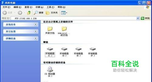 第二步:在地址栏输入FTP地址,如FTP://192.168.1.236后回车(小编这里的FTP设置的IP地址为192.168.1.236),有些FTP服务器设定了虚拟地址,这样的FTP地址不会以IP地址(如这里的192.168.1.236)显示,而是以域名的方式显示。