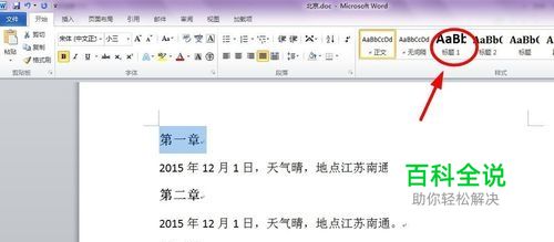 这时候的文字一般是正文格式的。选择章节,点击右上角的标题1