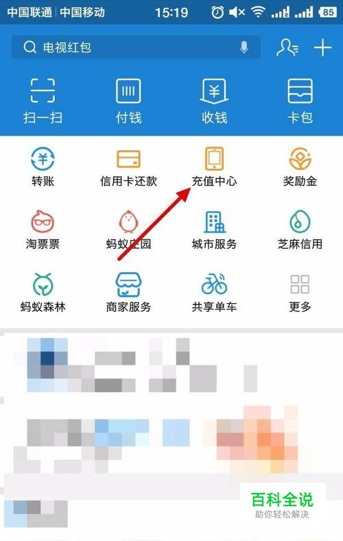 首先我们打开支付宝软件,我们在首页可以看到有一个充值中心,如果首页没有的话,我们可以点击 更多。