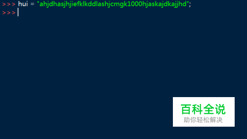第一步,在打开的python语言命令窗口,定义一个字符串变量hui,如下图所示: