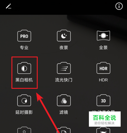 在更多界面,可以看到黑白相机的选项,我们点击该选项进入。