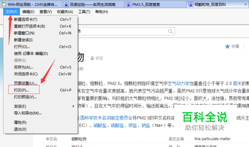 打开一个网页,找到您所需要打印的内容。单击网页左上角的工具栏上的“文件”,“打印”。