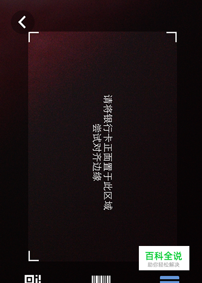 弹出,扫描的选项有,“二维码” “条形码” “银行卡”,选择“银行卡”,然后按照上面的提示说明