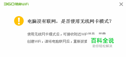 无线网卡模式在电脑没有联网时会提示是否使用