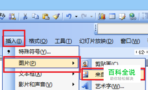 插入图片。点击工具栏中的“插入——图片——文件中的图片”,按照保存路径,插入准备好的图片,并调整好图片的大小与位置。