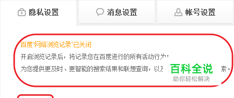 百度搜索记录开启成功如图中所示页面,同理,你也可以点击“关闭”来关闭百度搜索记录。