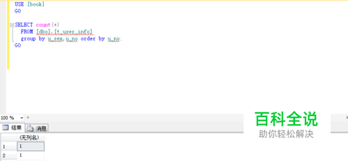 第六步,按照多个字段进行分组,这里查询表里记录根据性别和编号分组,如下图所示: