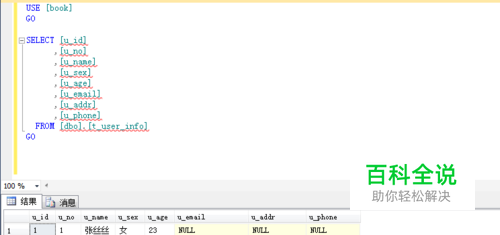 第一步,对已创建的数据库表t_user_info进行查看数据记录,利用select查询,后面是查询的字段,如下图所示: