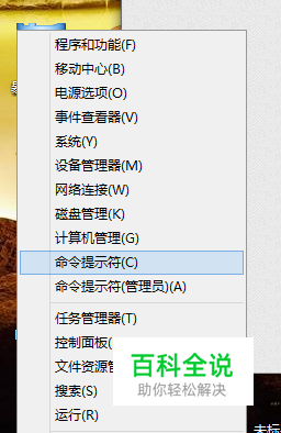 打开命令提示符。win8跟win7有一点区别。我以win8作为演示。 在开始菜单单击右键,选中命令提示符。 win7:打开运行,输入cmd,然后回车。