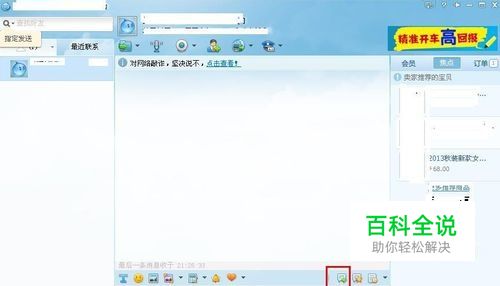首先我们先登录阿里旺旺账号,登录之后随便打开一个聊天窗口,打开之后我们可以看到在聊天窗口处有一个“快捷短语”按钮,单击该按钮。
