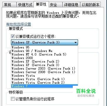 勾选“兼容模式”,下拉菜单中选择“Windows8”
