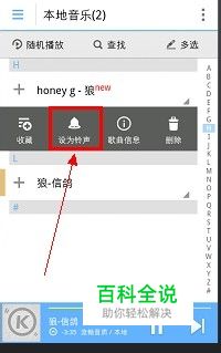 点击后,在歌曲的下面会出现一个选择菜单,我们在菜单中选择“设为铃声”,即可完成把喜欢的歌曲设置为手机铃声了