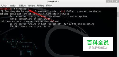 在Kali用命令 msfconsole 开启Metasploit (在终端里输入msfconsole)