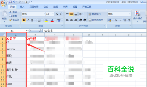 接着把“A行列全部选中”