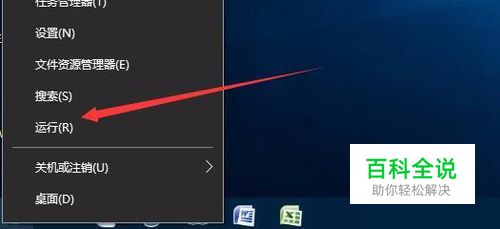 在Windows10桌面,我们右键点击开始按钮,然后在弹出的菜单中选择“运行”菜单项